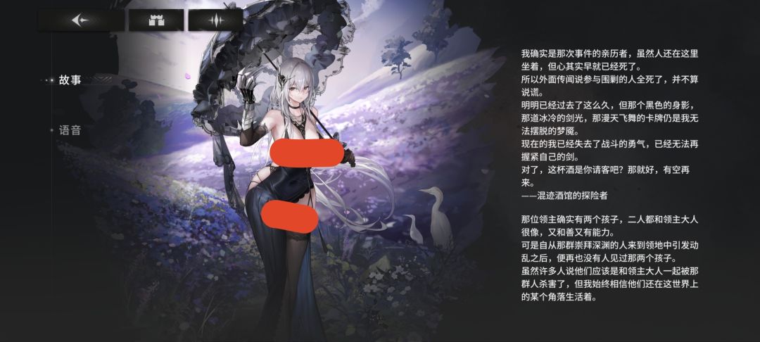 不过这边好像还有特别的情报呢。有人传出流言,说她的样貌和十五年前被灭门的普尔兰家的小女儿相似。不过……那起事件的参与者如今死的死,疯的疯,这份情报真实性也无从考证了。说到底就算是她又如何呢?一个伯爵家被一帮狂徒灭门,上到皇室下到贫民却都没人去管这件事,背后可不是流寇作乱那么简单(笑)。大人物们想要她的命,或许混迹于深渊,对她来说反而更安全吧。至于普尔兰家的长子,虽然没有明确的消息,但大抵是死了吧。这位被父亲视为“废物”的继承人至少在最后捍卫了家族的骄傲与尊严……