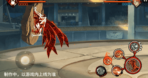 横向破坏场景若六尾鸣人追击起跳时按住二技能,则会使用九尾之爪连续攻击敌人,按住时间越长,攻击次数越多,最后将敌人从另一侧击飞进当前场景。