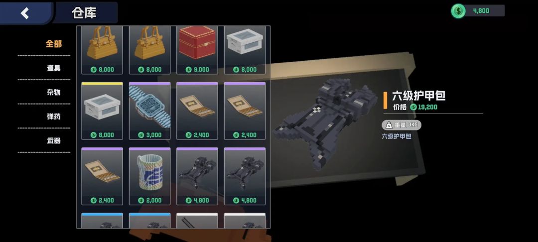 返回安全屋后,你可以在仓库欣赏自己本次行动带出的货物。