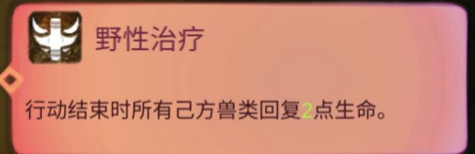 其他技能建议搭配野性治疗(行动结束后,所有兽类恢复2生命,无距离限制。搭配自然之赐多重恢复)