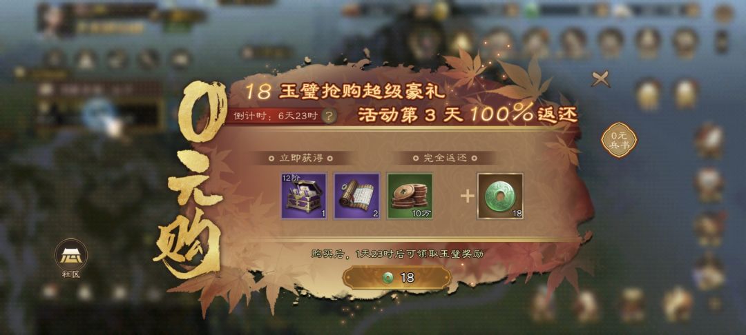 在限定时间内购买0元购礼包,一定时间后会全额返还。
