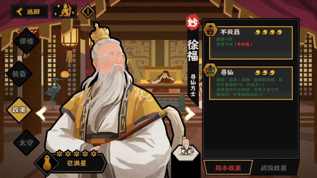 政策的缺点在于:尽管能够补充一定的朴素信仰,但是徐福本身并不能主动撤使,只能灭国后自动回来,所以实际上一局游戏中,自身能够提供的朴素信仰还是较为有限。