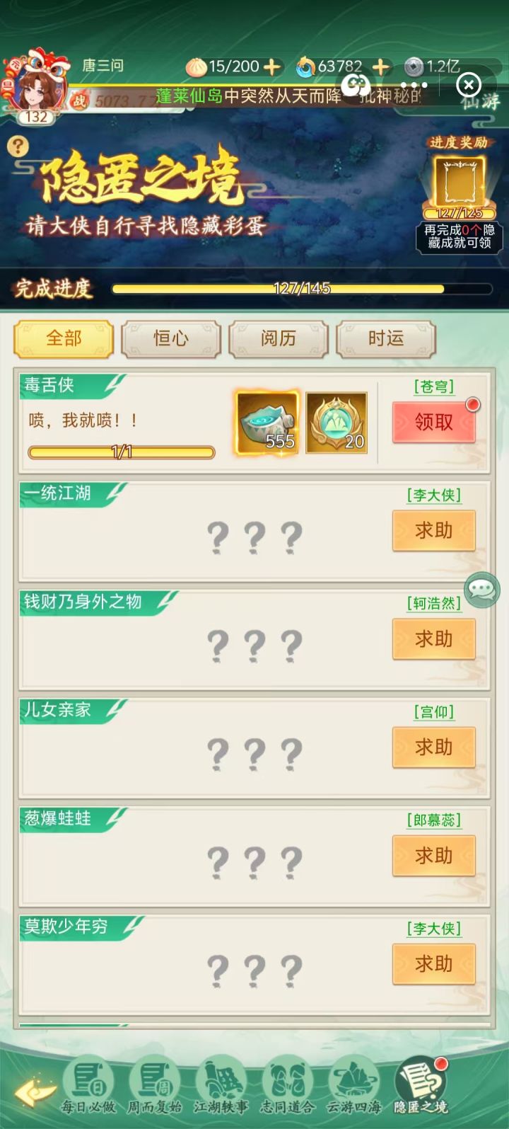 这个成就终于完成了,在蓬莱里看很多人在骂,有人说有前置条件,有人说不需要,我目前在神魔之井乙,有人还没出黄泉路也完成了,大家都可以试试。