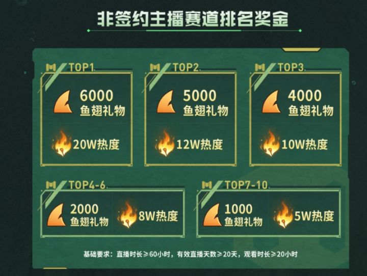 看出来这游戏是这缺主播,鱼台的这个每天给点券和烈狮箱子,外加20天大于60小时,就可以领1000到6000的排名奖励。