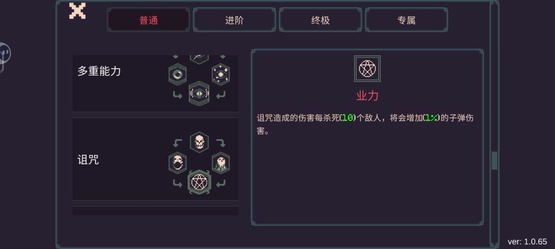 核心是碎片迸发和诅咒,业力会给子弹伤害,挂上诅咒之后,任意原因死亡都算诅咒击杀,额外选择镰刀,用来选择召唤物伤害加成(没有召唤物,不出这个选择),盘中兽是击杀给召唤物伤害,这两个保证你无尽里有足够伤害去击杀怪物,达成连锁