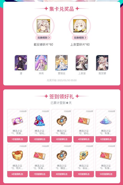 签到活动开启,累计签到10天,共计领取精选之证*20、钻石、失落之境等道具!