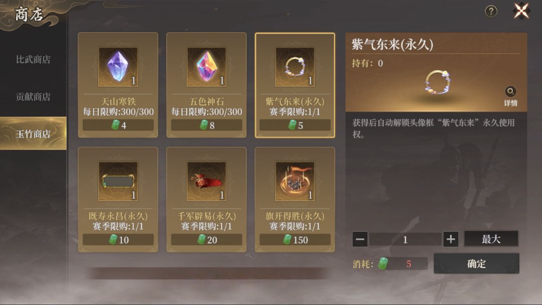 玉竹在玉竹商店中用于兑换头像框,聊天框,连杀播报,行军套装,兵种皮肤等豪华好礼。