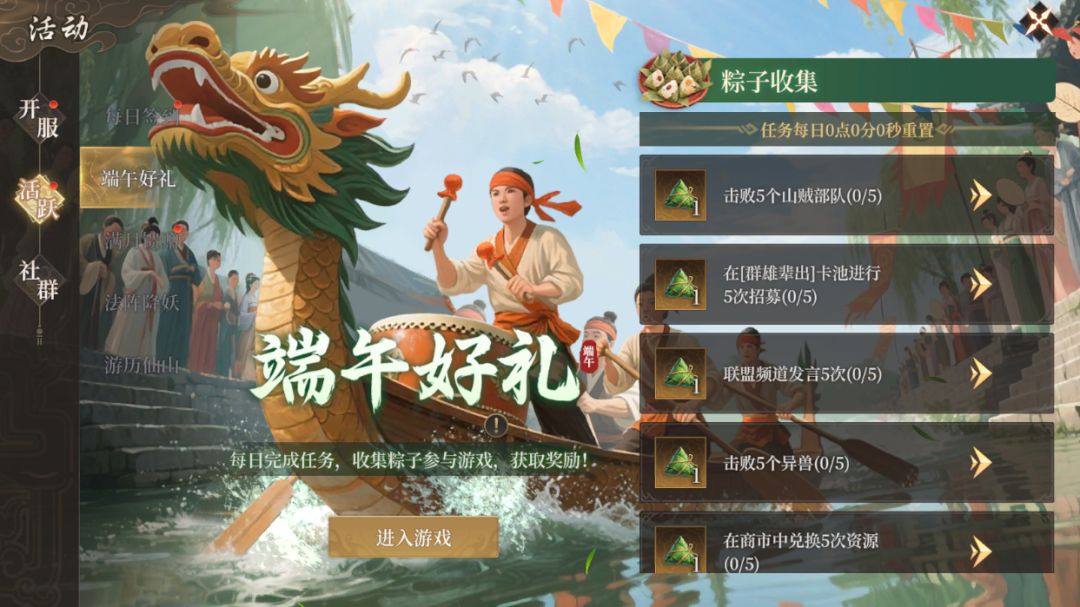 活动内容:活动期间,每日完成指定任务,即可获得粽子奖励!