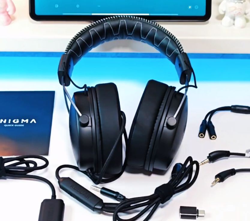 采用60mm驱动单元,免驱设计即插即用,省去了繁琐的调音,麦克风经过精心设计,具备出色的降噪功能,能有效过滤环境噪音。记忆棉耳罩搭配人体工学设计的头梁,即便长时间佩戴,也能保持舒适,减少耳部与头部的压迫感。配件更是齐全:可拆卸独立声卡、 USB转typeC转接头、一根3.5mm音频连接线、一副冬季蛋白皮替换耳罩、可拆卸双麦克风,麦克风更是单向和全向都给你安排上。