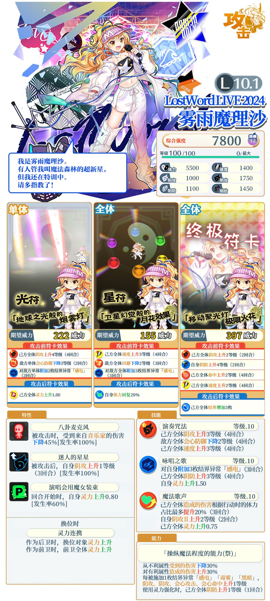 ※「[LostWord LIVE 2024]雾雨魔理沙」需要使用同名伙伴或者「巫之替身」进行界限突破。不同泛异记号的伙伴、「巫之替身」以外的替身无法对其进行界限突破。