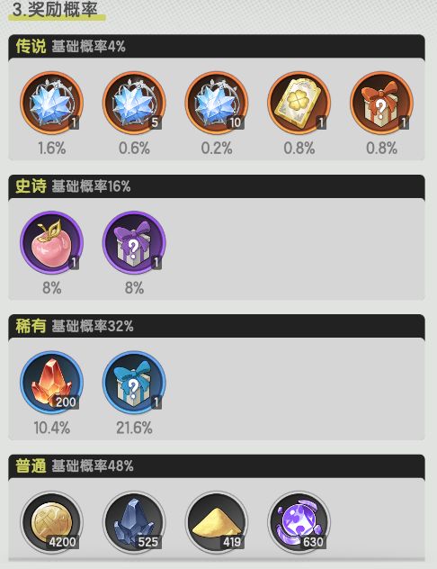 奖励大多都是一些材料和抽卡券,积少成多还是很稳定的资源获取来源
