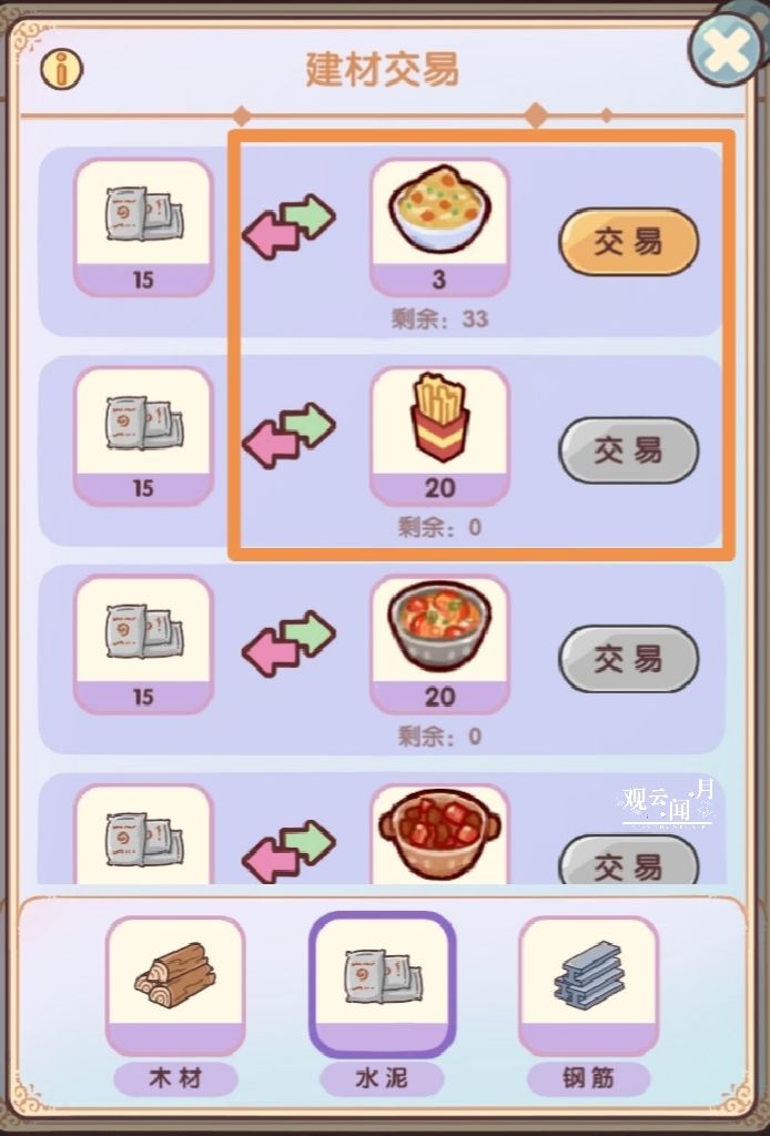 选择1:获取500个土豆,烹饪出500个黄金薯条,兑换25次水泥