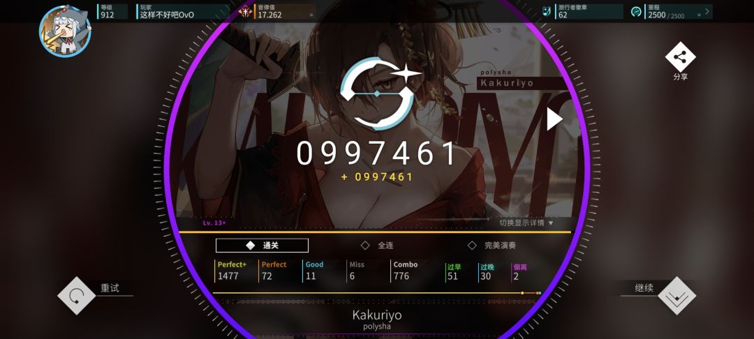 精神不太好啊,睡得不够,前面几首打得还行吧,后面不能集中精力了,准度和分数都很低啊,不过还是+0.005。