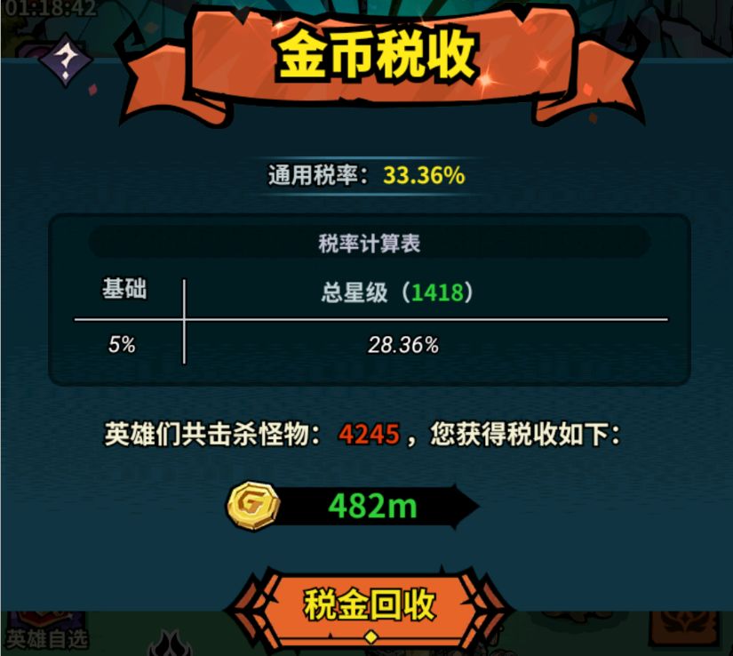 - 怪物死亡后的金币,一部分进入英雄背包,另一部分被小镇税务官收取作为金币税收(牛马辛苦干活还要被收税),税率与玩家英雄总星级有关,可以利用小镇税务官每日税收情况倒推出今天怪物金币掉落总数;
