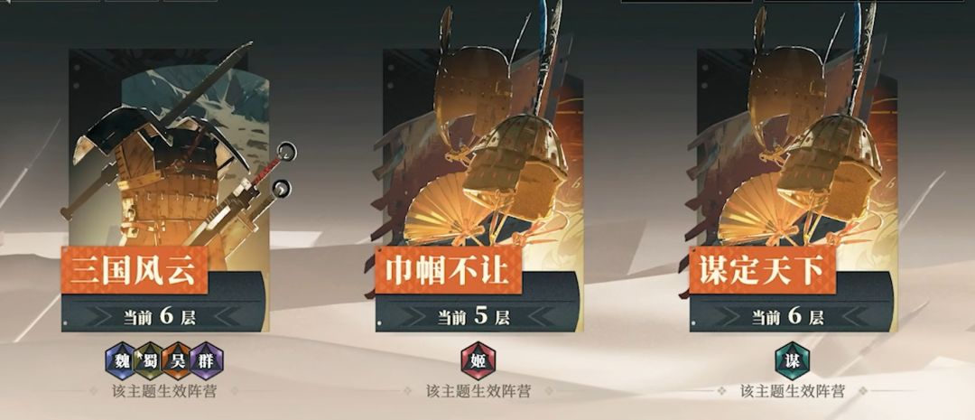 第一关魏蜀吴群雄,第二关巾帼,第三关谋士