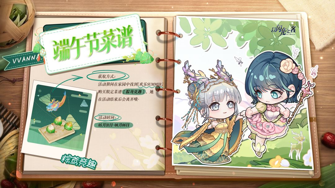 5月31日05:00-6月7日05:00,限时NPC-欢乐summer会出现在合伙人们的家园。合伙人们可以在欢乐summer处购买菜谱【粽鸢竞趣】,千万不要错过哦!