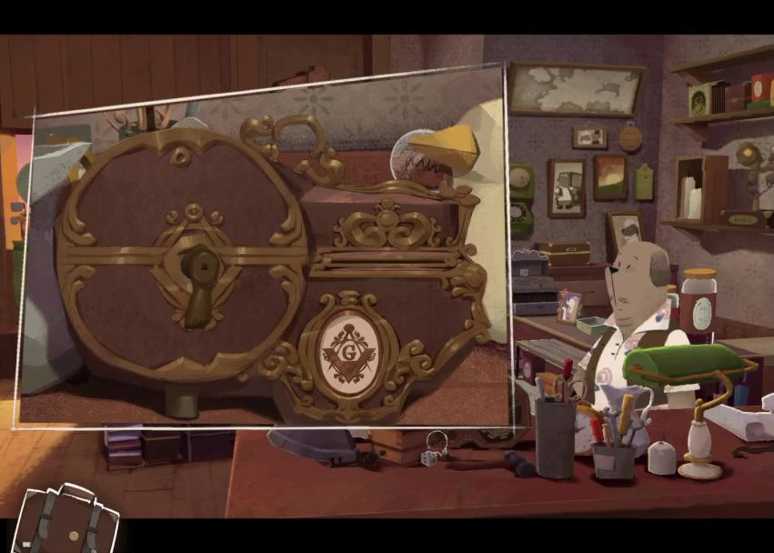 34.前往贝尼尼家,与贝尼尼对话,查看照片墙,打开橱柜上的密码箱(密码:0794),得到【烟斗】