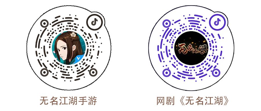更多曝光花絮,请使用抖音扫码关注:“无名江湖手游”或“网剧《无名江湖》”查看。