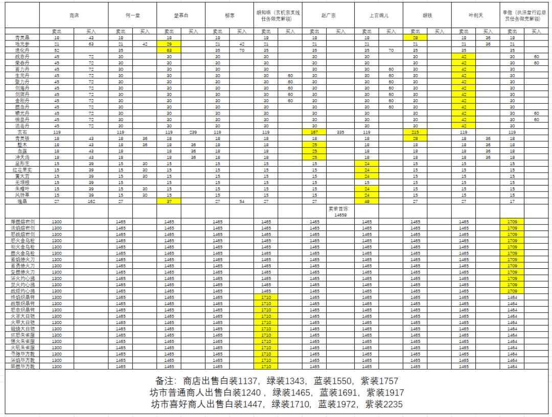 【百科全书】厚土城坊市商人喜好一览图