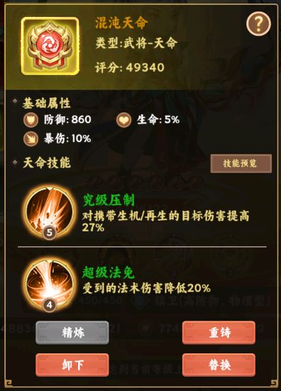 1. 天命重铸后,属性、技能和技能数量有几率发生变化。