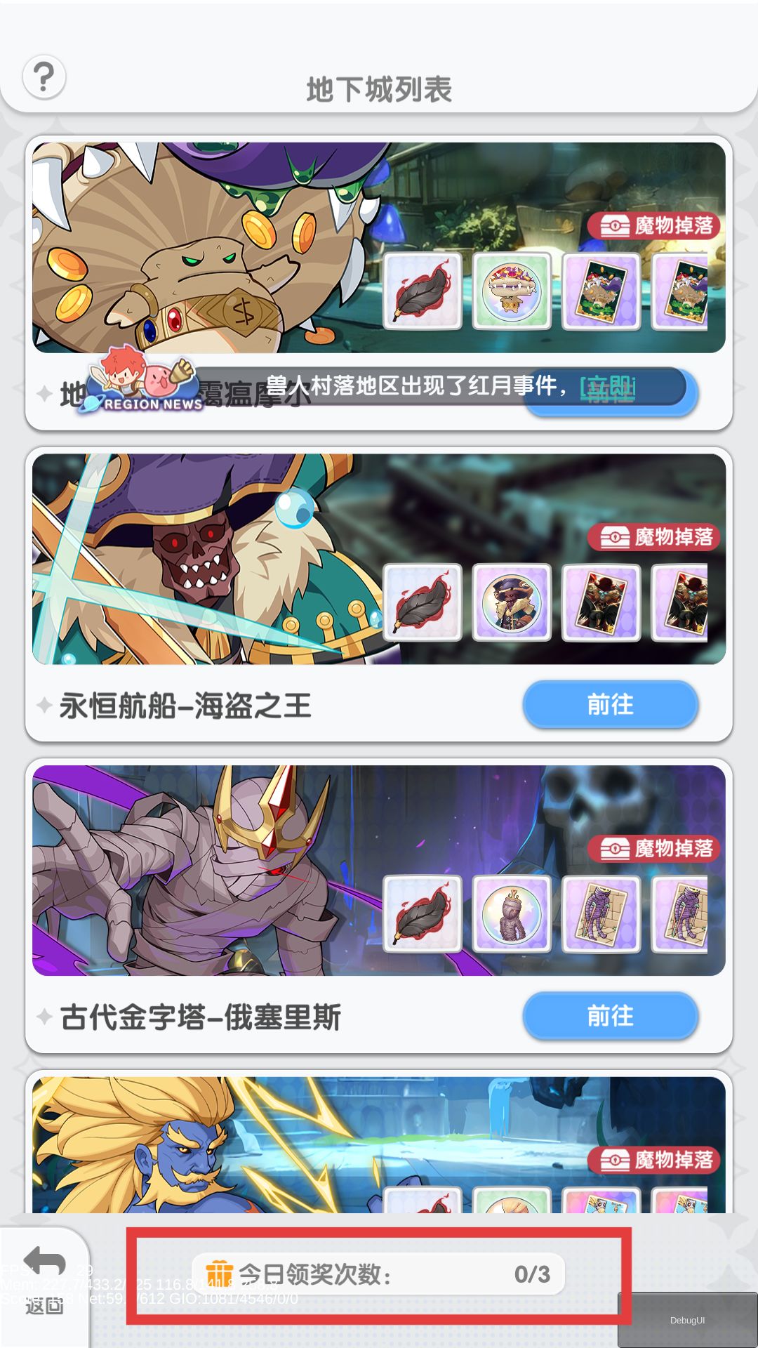 通过主界面【玩法】-【地下城】入口进入地下城界面。