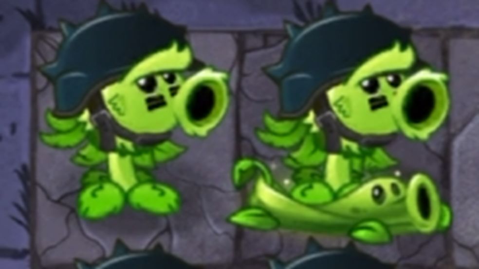原始(叠种原始豌豆射手):发射岩石子弹,有概率发射重型岩石子弹,对命中单格目标造成范围伤害,对所有中小体型僵尸击退1格并眩晕1秒。对上下左右4格目标造成溅射伤害,并有概率使中小体型僵尸眩晕。被动:对处于底线且处于可以被击退状态的中小体型僵尸,每次判定击退时有概率将其击飞地图(视为死亡)。