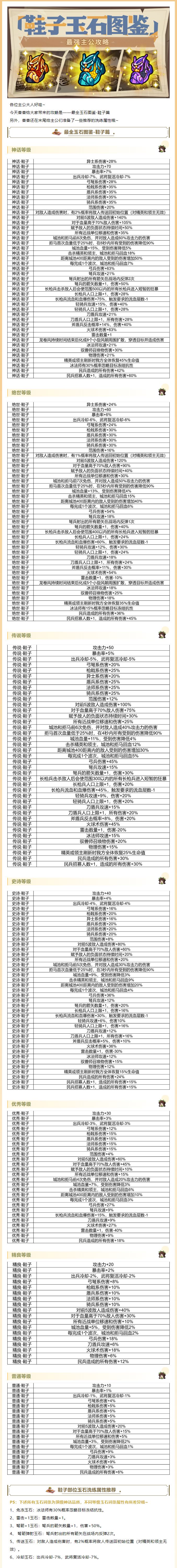 最强主公攻略丨玉石属性图鉴-鞋子篇!