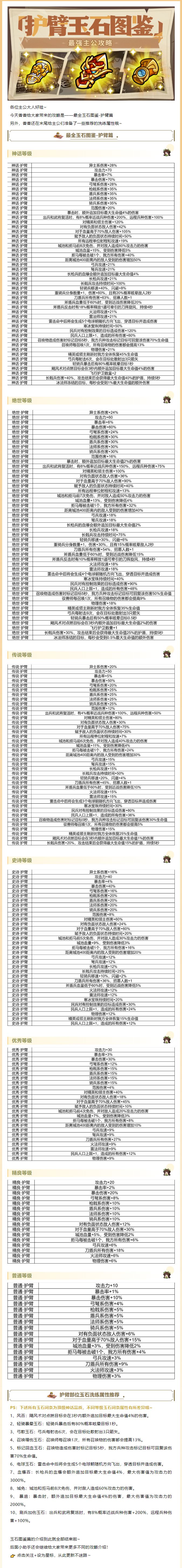 最强主公攻略丨玉石属性图鉴-护臂篇!