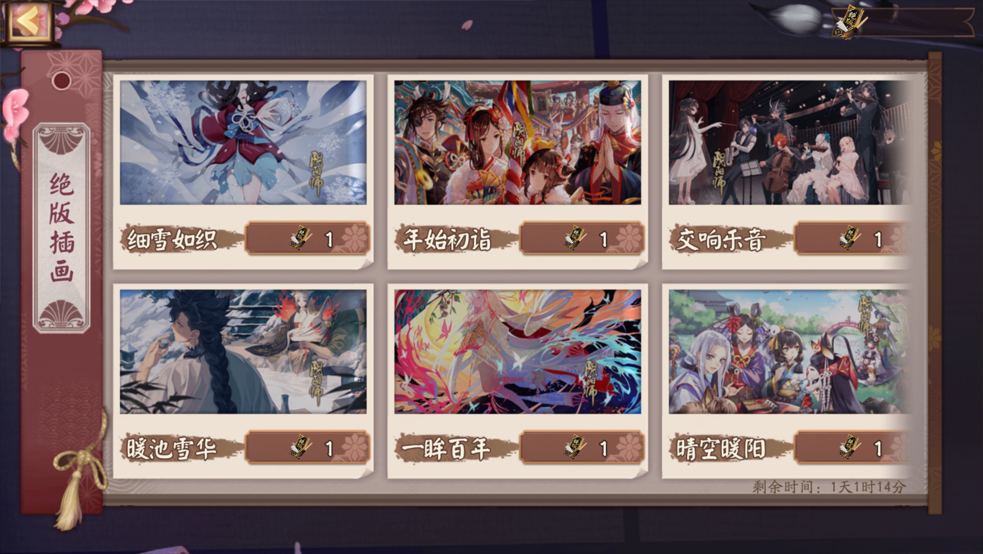 (若大人们在活动结束时仍未兑换绝版插画,系统将会自动将绝版插画券转化成150勾玉。)