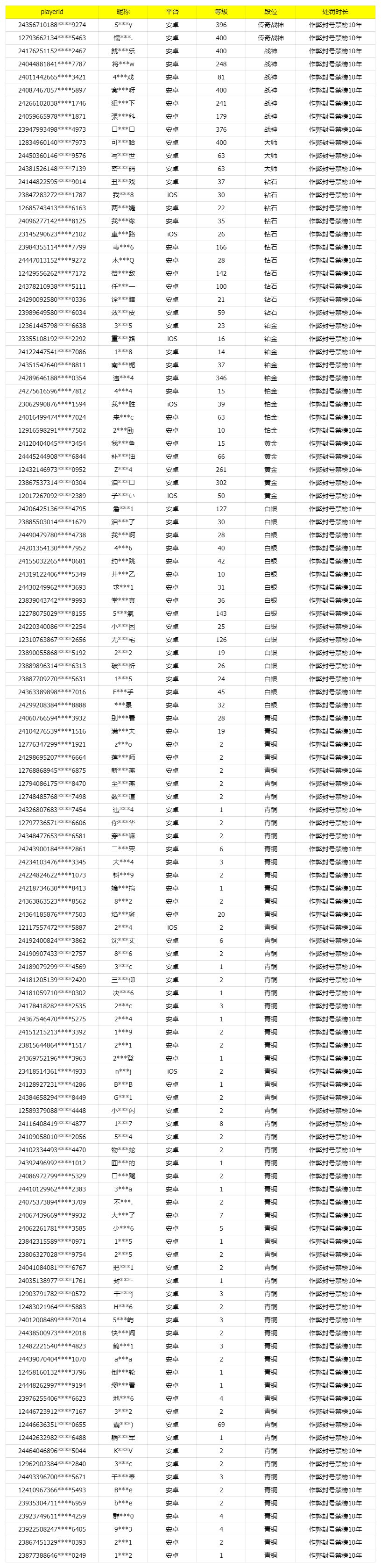 我是瘦普,最新外挂处罚公告来了。