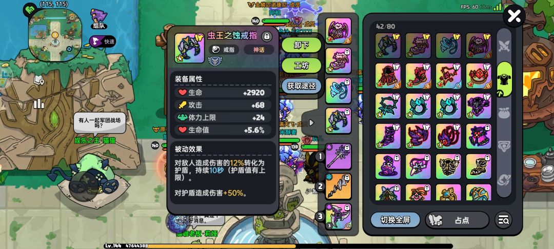 3.防具选择蝙蝠套,有减伤和增加移速,防止被秒杀,主动技能也有增加移速效果。戒指选择虫戒,可以获得护盾。项链灵魂,选择疾风守御,受伤有几率吹风超远击退周围敌人,可以把敌人打下坐骑,楼主用了都说赞。