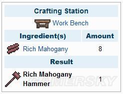 《泰拉瑞亚》工具作用和配方与获取方式一览-锤子类