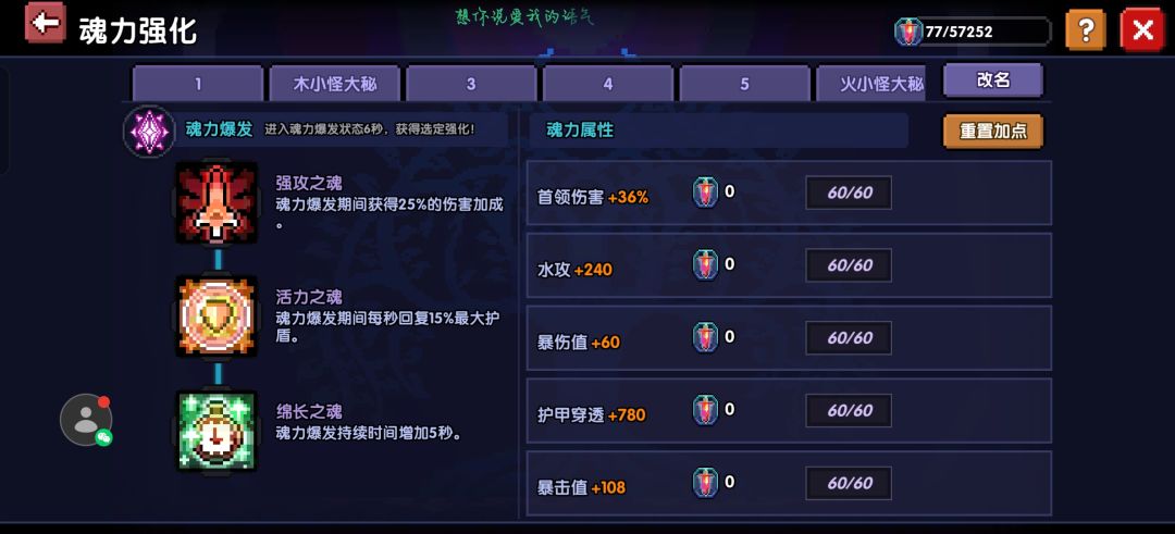 主动技能选择:[强攻之魂][活力之魂][绵长之魂]