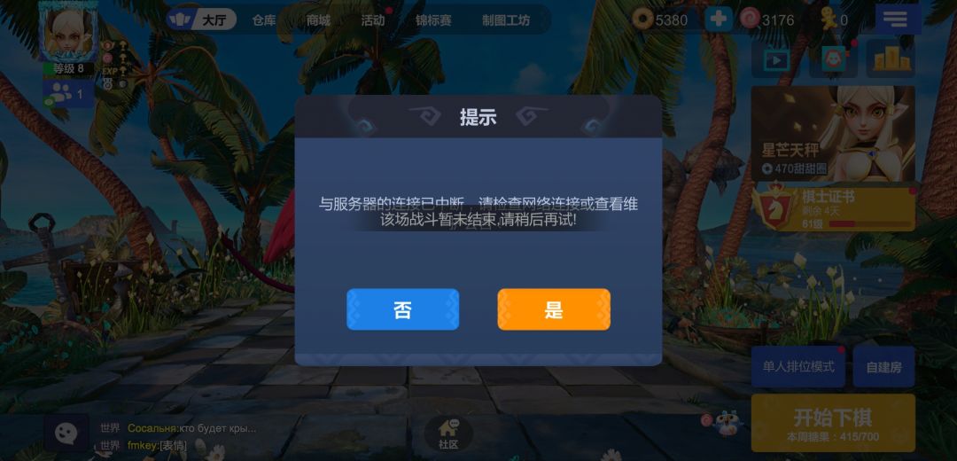 游戏刚开,就显示我断开链接了。。。还不能重连,真是醉了,今天还刚氪了通行证。。。因为人在国外,之前公测玩国内的,有点卡也能忍,现在下的国际服还这样,真是越来越垃圾了。这游戏黄的快是有道理的。客服,也都是形同虚设。