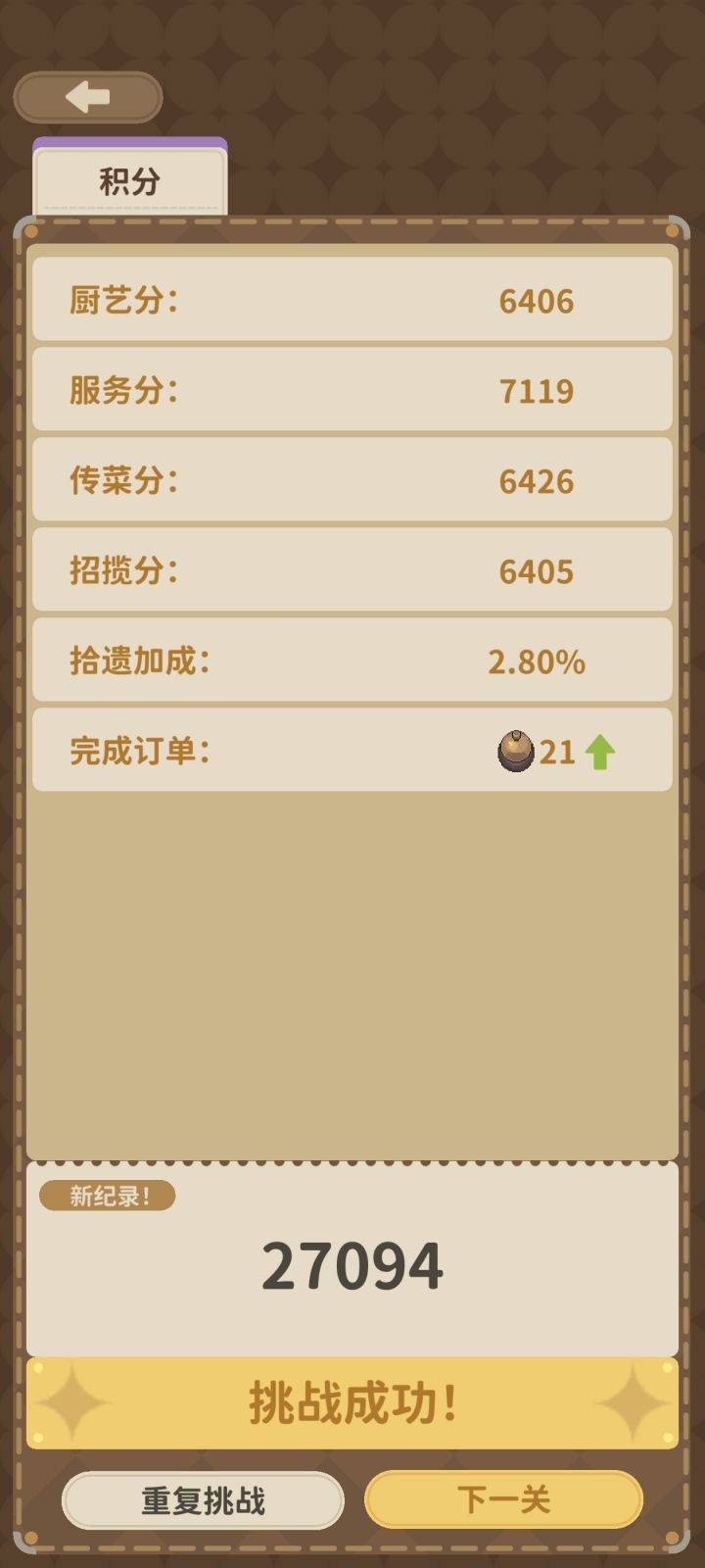 额外多8个顾客,只要是评分要求的关卡,都能用人数赚取额外的积分