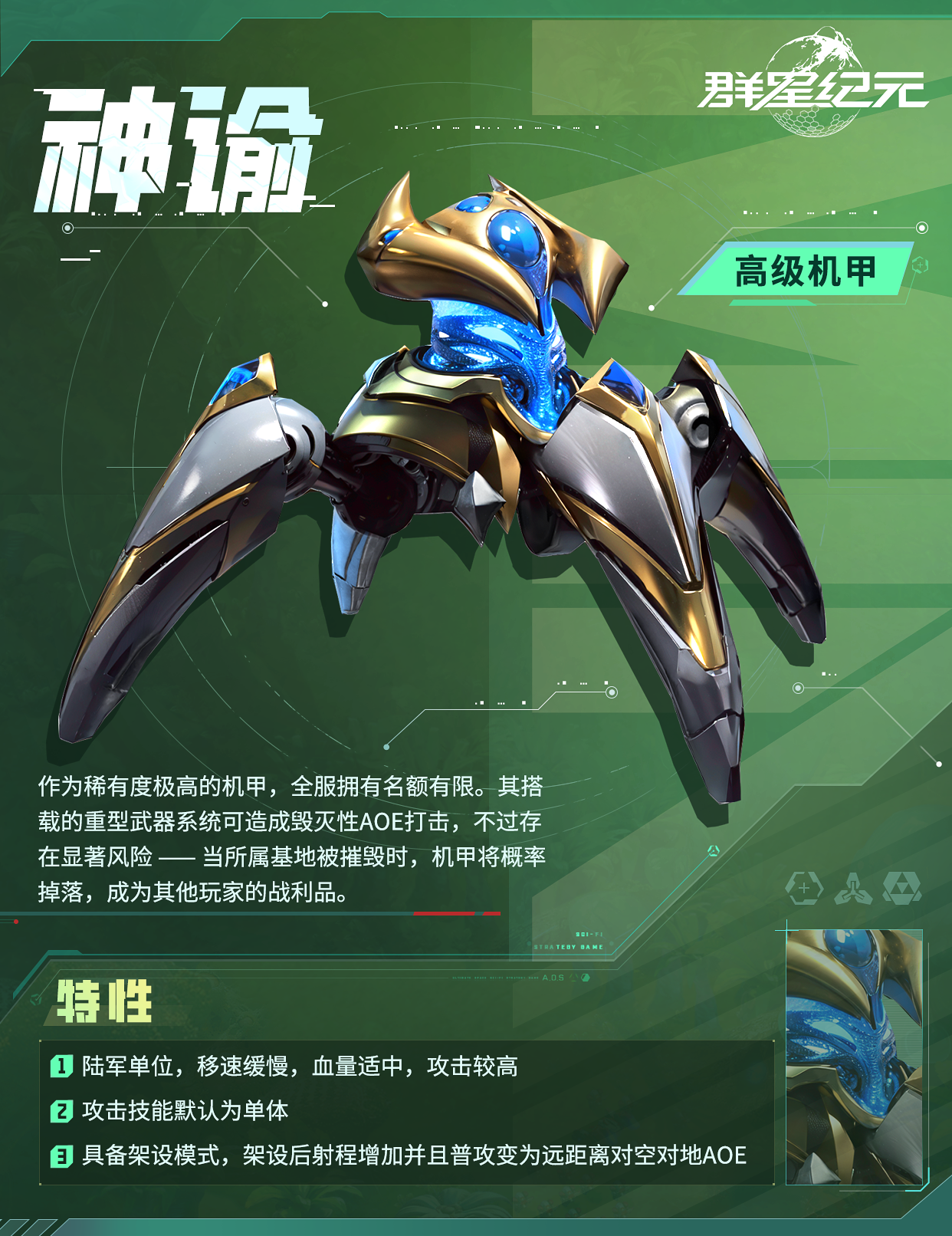 三大远古机甲携其颠覆性的特性降临战场,必将彻底改写异星战场的交锋规则! 它们不仅是强大的作战单位,更将引入全新的战斗机制与策略维度。