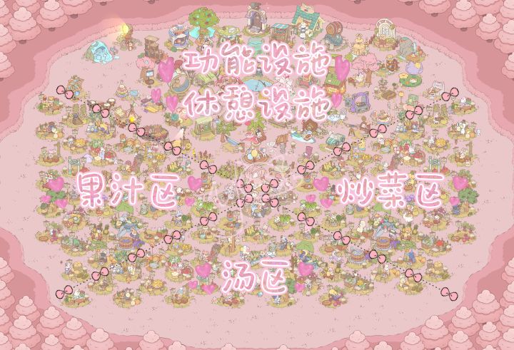 ←↓→左下右三个区域分别按照果汁、汤、炒菜来分区 小猫咪们各司其职 送材料哒时候也不会多跑很多路 提高了工作效率~