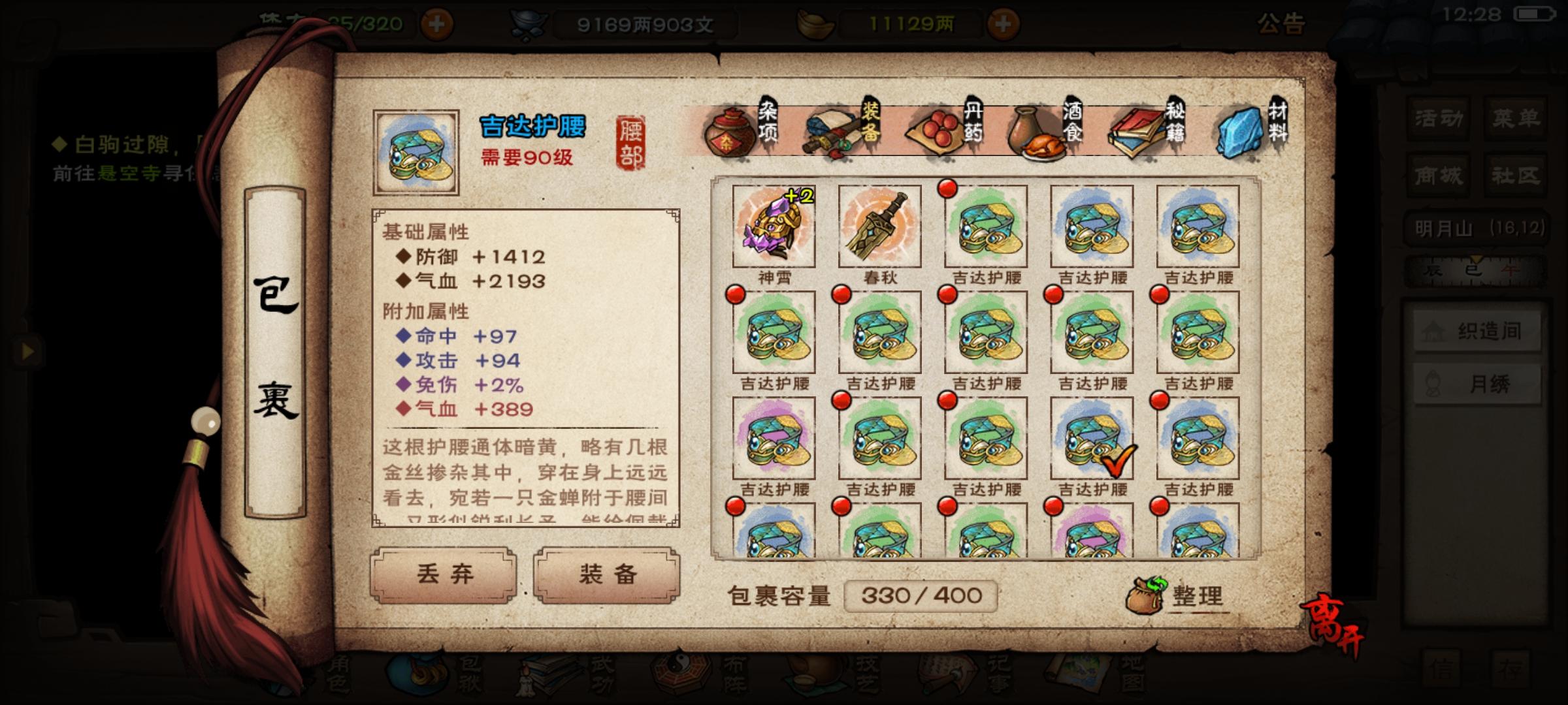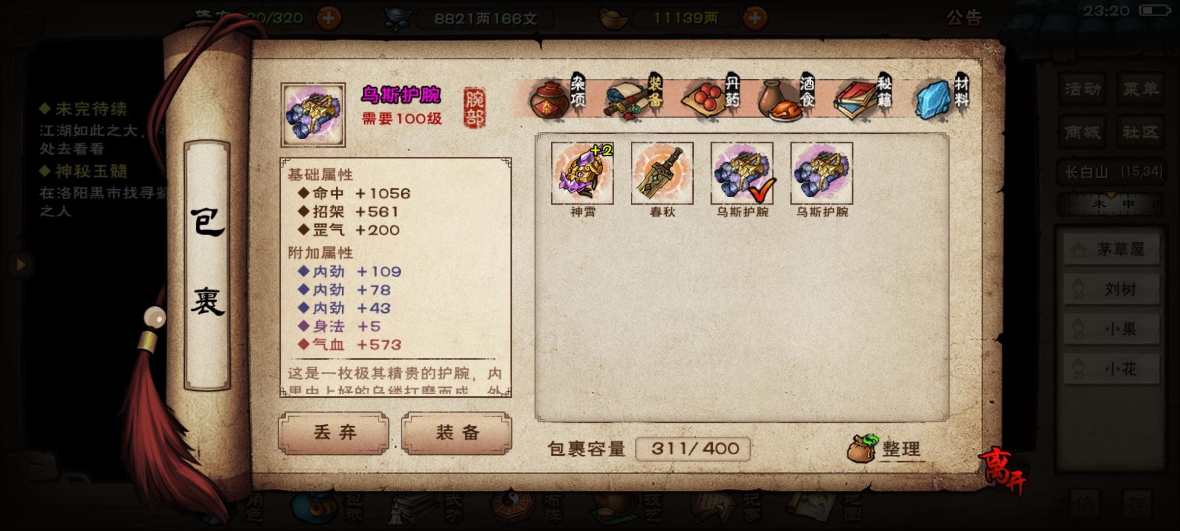 2、泠月第1件消耗160泥,230内劲5身法护腕,83分毕业装。