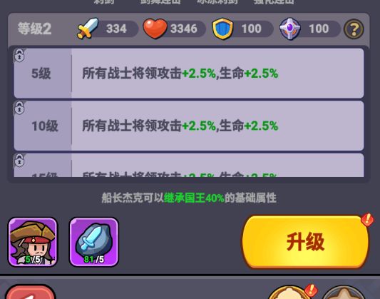 将领的属性会继承国王属性的60%。而将领自己的攻击能力会按比例传递给对应营地的士兵(炮塔),所以,国王、将领、士兵(炮塔),三者的属性是息息相关的。