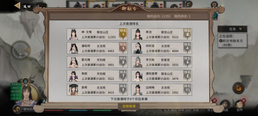 视频里可以看到我用的是龙枪,龙枪在兽潮战的表现可以说是很拉胯,正常玩5000分就是个坎,根本拿不到第一,无法触发神目仙祠任务。