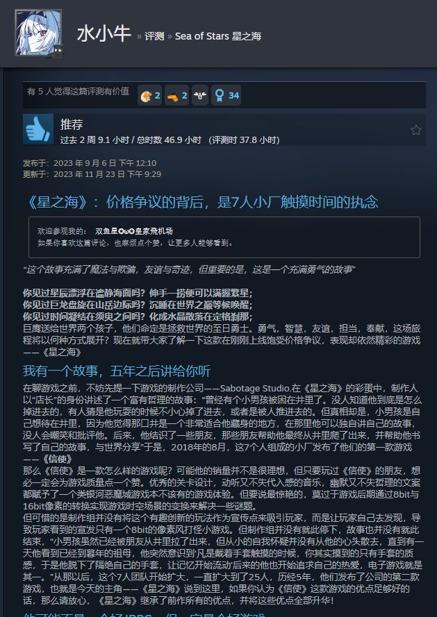 《星之海》作为2023年的TGA最佳独立游戏,在我看来他获得了属于自己应该有的荣誉。但真实情况却是很多人都认为他名不副实。因为游戏刚上线时很多玩家发现这部在宣发时期倍受期待的复古RPG游戏,实际玩上去并不是很“好玩”。