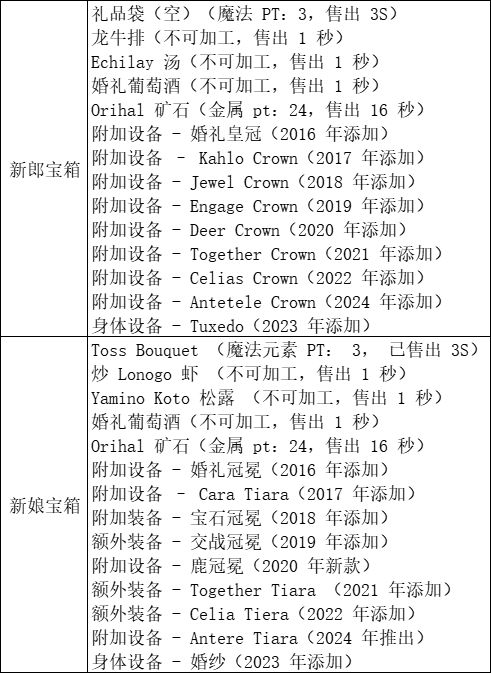 婚礼活动宝箱内容
