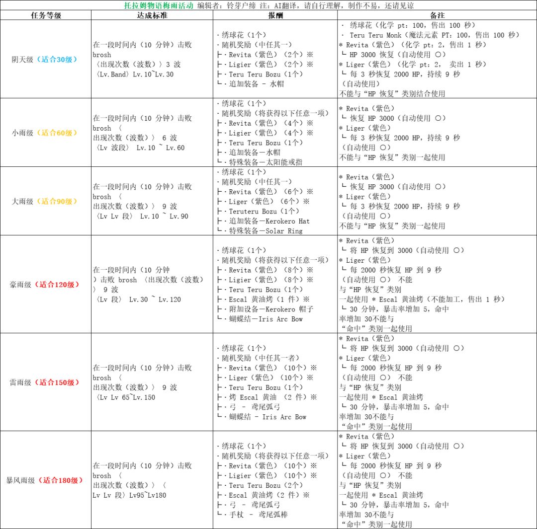 梅雨活动任务表