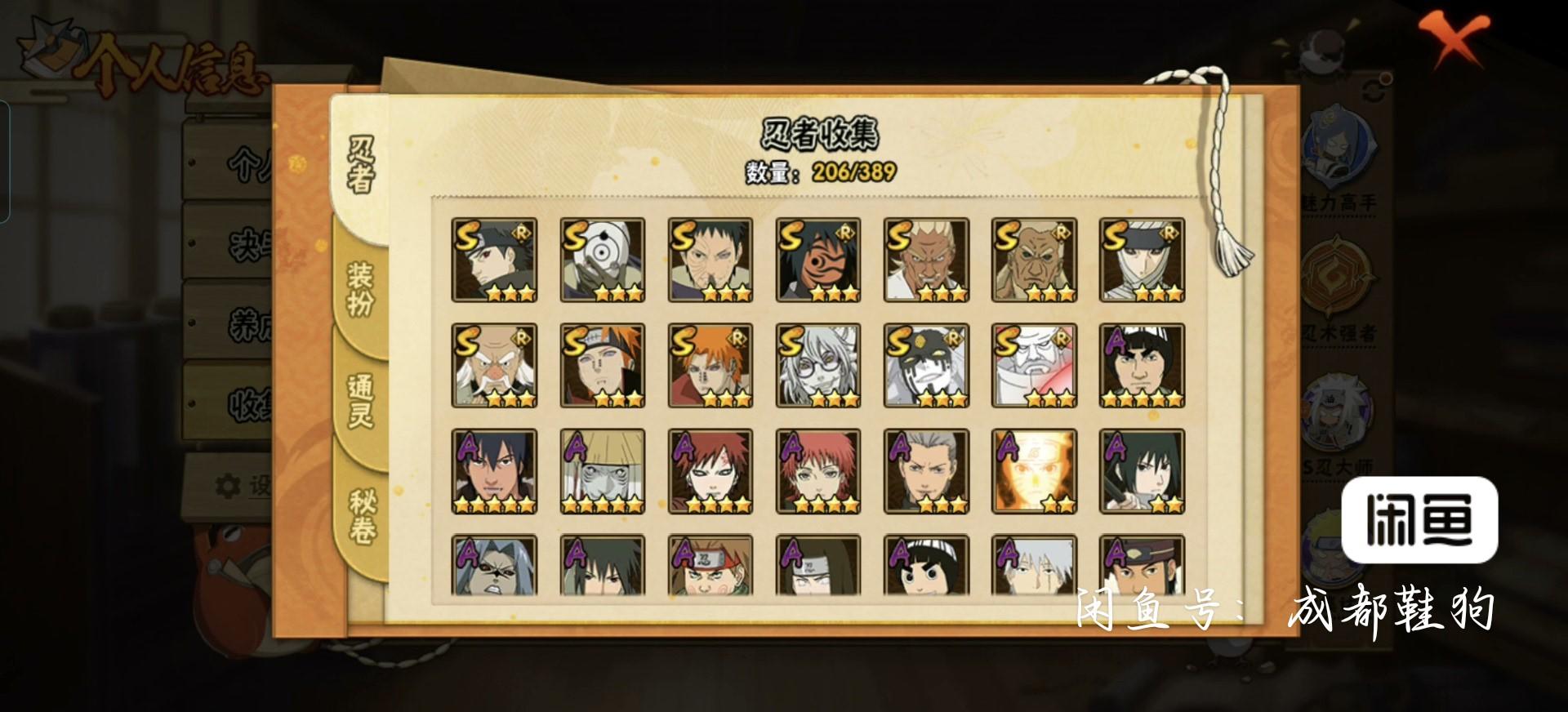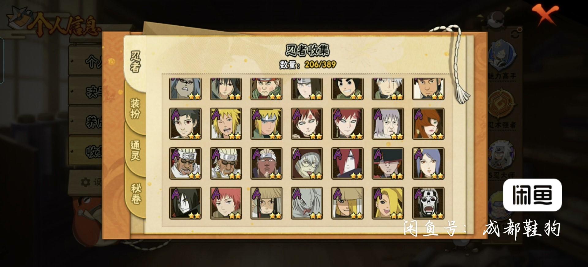 战力1100万,忍法帖忍者九个,氪金忍者有盾狗,鸡翅,大胶机,爱情哥,号里还有2万多金币