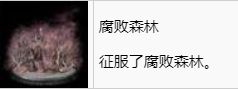 【腐败森林】特异地形事件会在地图东南边刷新一片紫色的森林,此区域会附加腐败效果(身处其中会持续损失生命值)。在腐败效果累积期间持续治疗自身并跑酷绕过敌人,前往带有红色旗帜标记的堡垒,在侧面塔楼的屋顶获得藏宝图,然后会新增一个指向某棵树的红色旗帜标记指引。爬到树上跳到树干侧面的花朵处与它互动,即可获得免疫猩红腐败的能力。