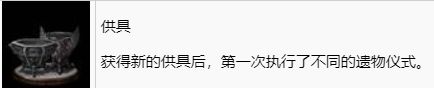 在圆桌厅堂的小壶商人处购买所有的供具(共11个)即可跳杯。总共需要花费18600暗痕。第一个供具在完成第一个出击任务后解锁,其他供具需要通关全部的8个出击任务后即可解锁购买。供具的作用是让角色能够装备不同颜色的遗物。