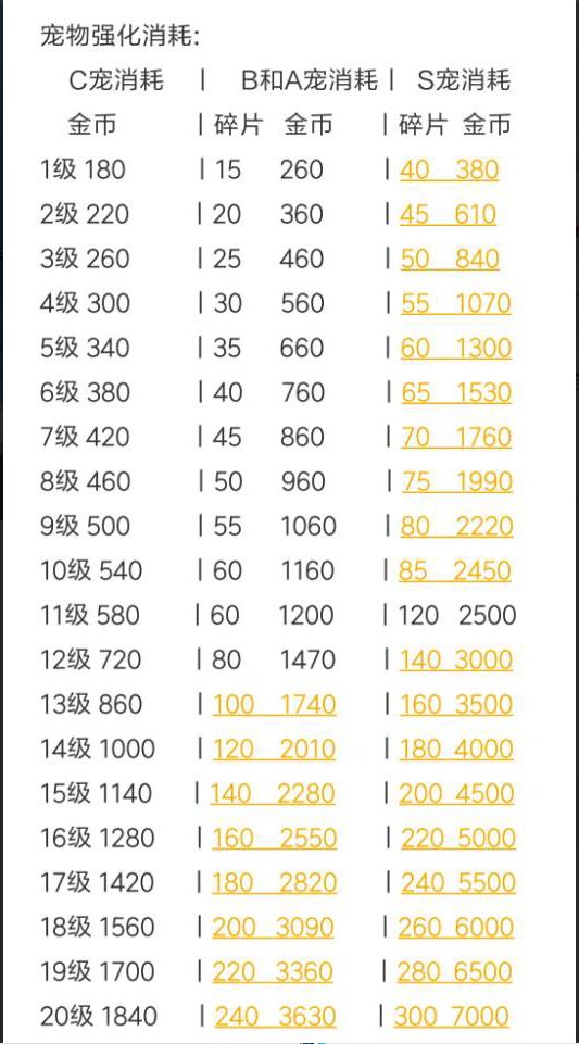 这么多字能看下来不容易: 给大家附一张升级所需要的碎片
