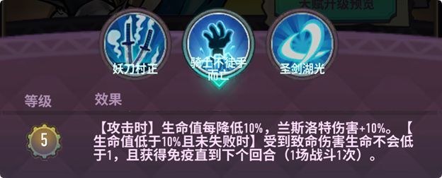 天赋:生命值每降低10%(当前血量/队伍总血量),伤害+10%