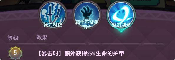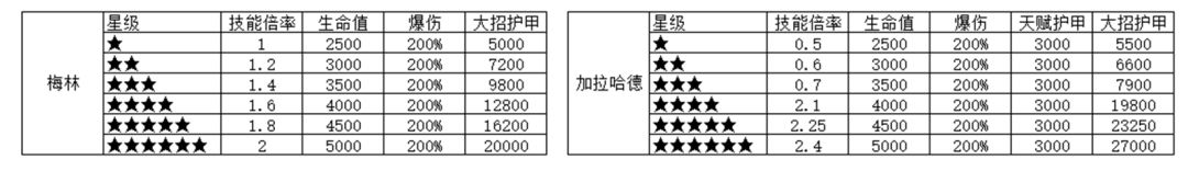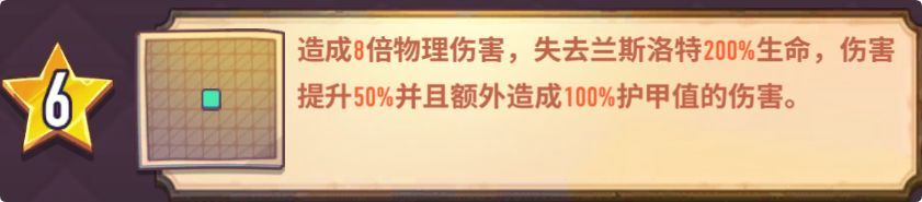 例:当前队伍总血量为1000,兰斯洛特自身生命值250,兰斯洛特放大招后损失500血,那么天赋将提供(1000-500)/1000/10%×10%=50%的 伤害加成