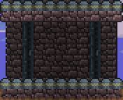 板条墙在某种意义上很像木质平台,能和石墙搭配的很好(是很好,不是完美),这样的铺墙方法,相比前一种而言,更加和谐,比前一种看起来更加自然与真实,某种意义上更适合“需要木架子”的场景,比如药店,矿工小屋,酒吧等。板条墙,合成材料不记得了,请询问向导。板条墙在木石系里也是很常用的墙体,多见于1.24以前的版本。这种墙体比上一种适用的范围更小了。不要把石墙铺在板条墙的上面,否则就会像下图这样。
